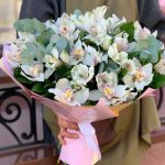 Воздушный букет белых орхидей и альстромерий