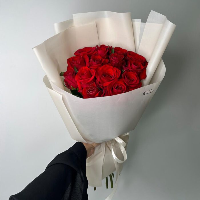 11 червоних троянд під стрічку