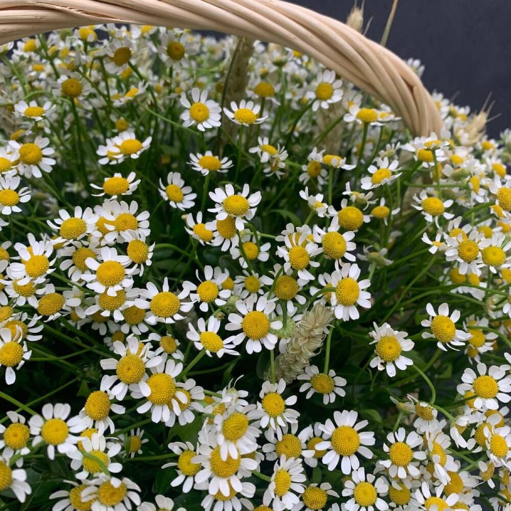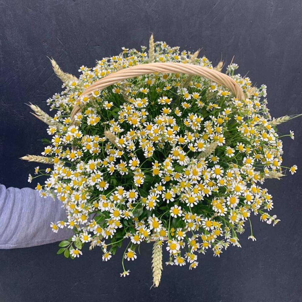 Корзина из ромашки (матрекарии), триникума, зелени «Летнее танго»