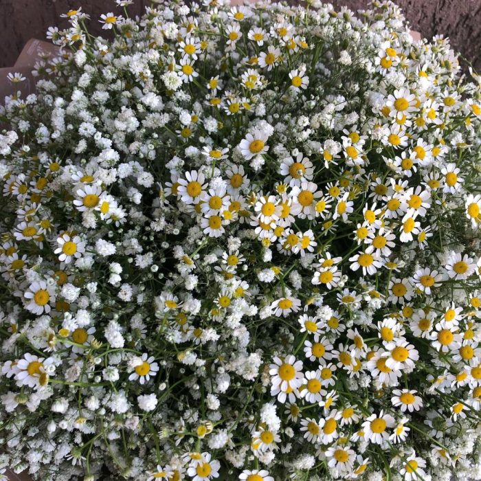 Матрикария (Ромашка Камила) – 15 шт.Гипсофила – 6 шт.Упаковка – 3 шт.