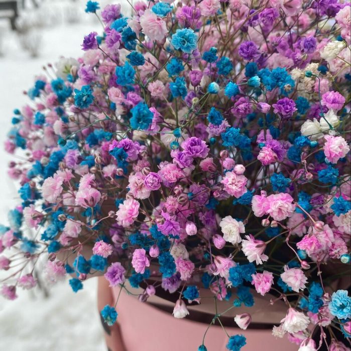 КАТАЛИНА премиум букет из пионовидной розы Джульетта, голубой Твидии и лунного Диантуса