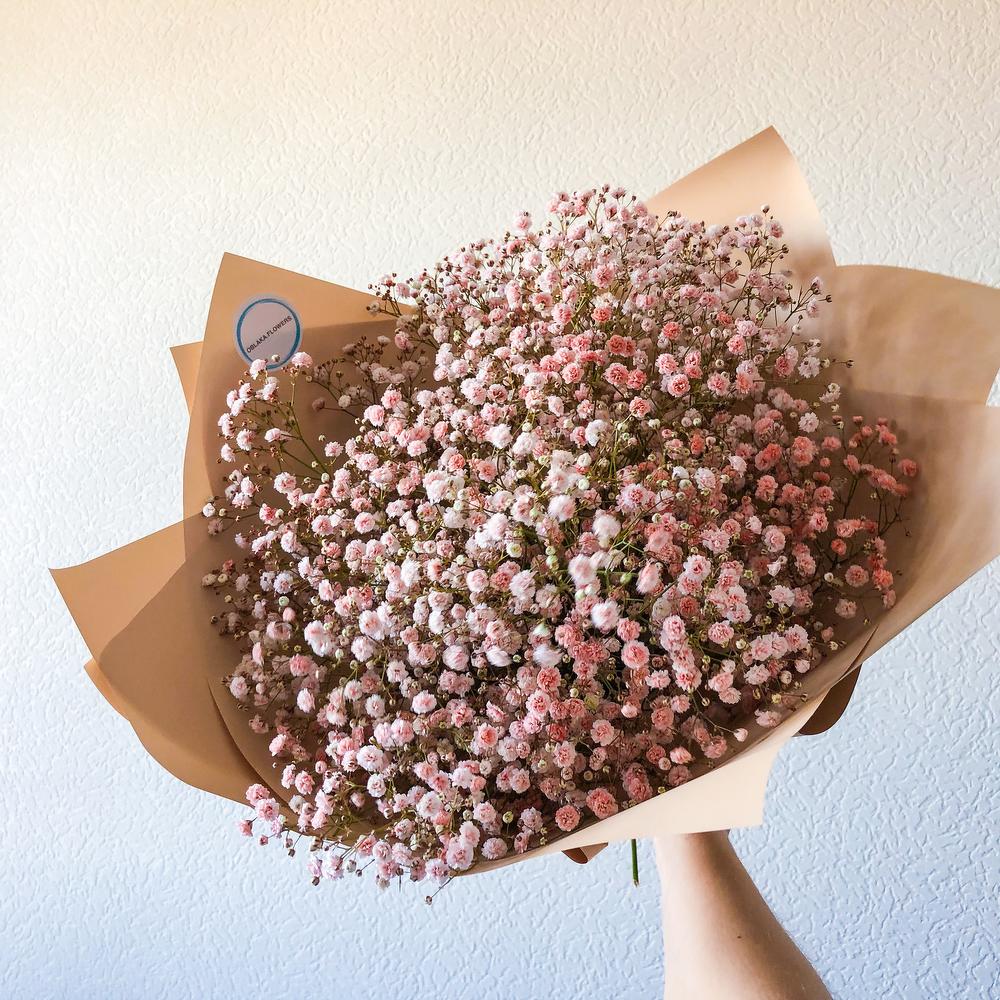Гипсофила – 7 шт.Упаковка корейская пленка – 2 шт.Лента атласная – 1 шт.
