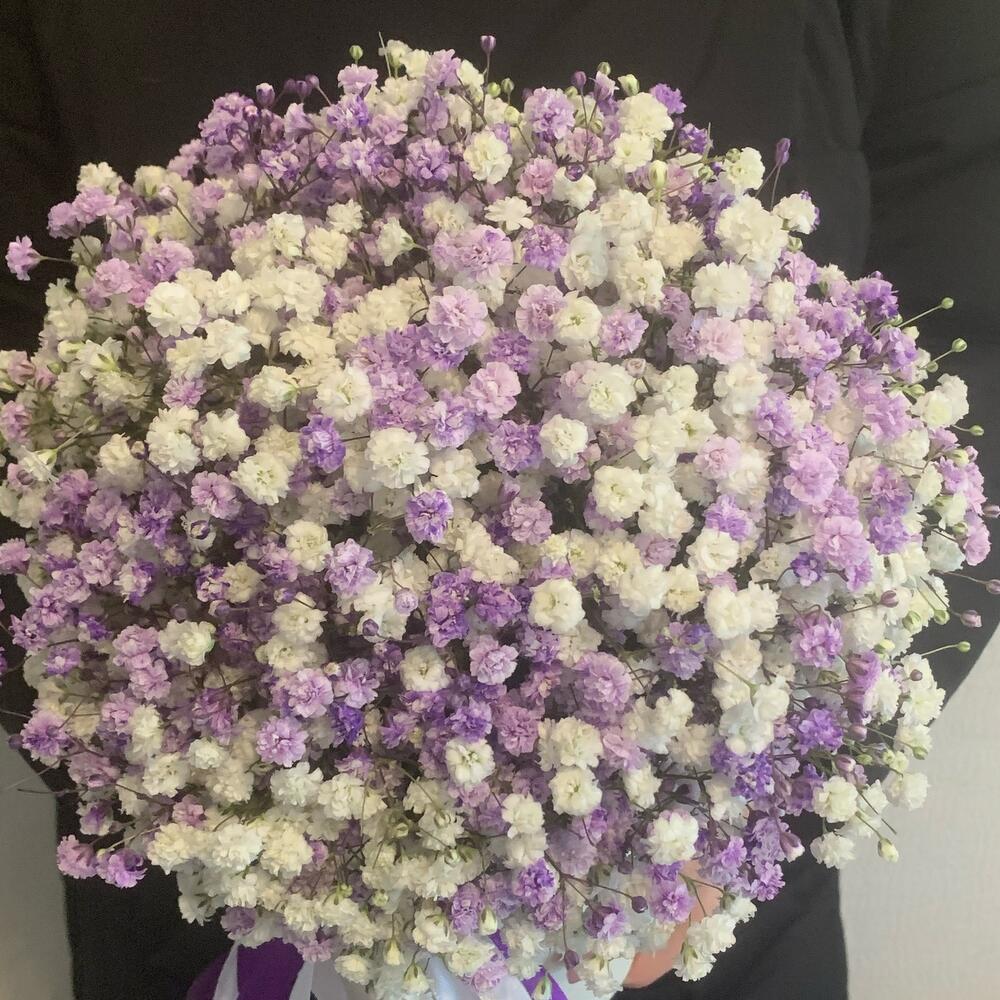 “Сиреневый туман” – композиция из гипсофилы в шляпной коробке