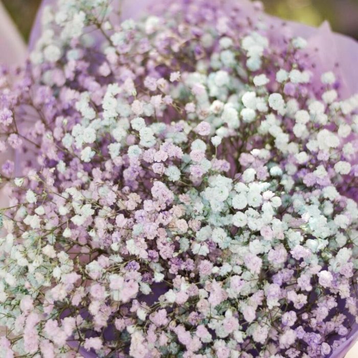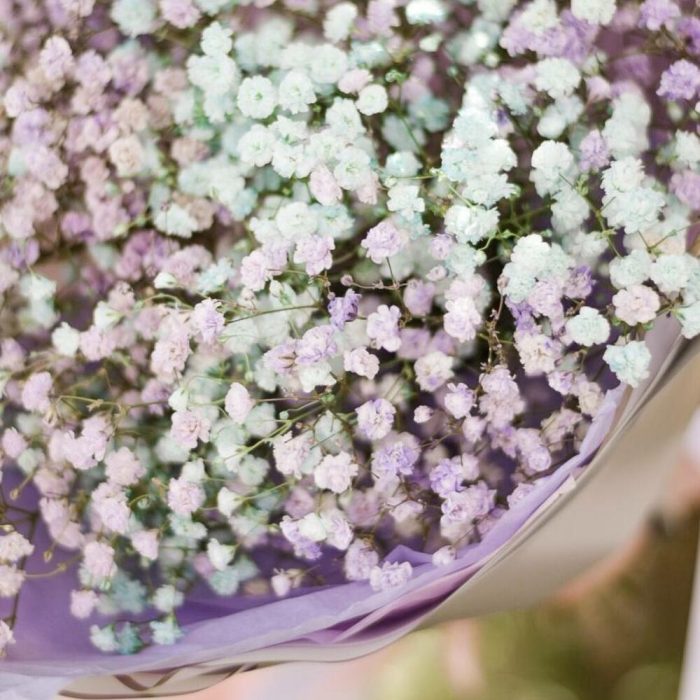 “Сиреневый туман” – композиция из гипсофилы в шляпной коробке