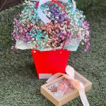 Гипсофила – 7 шт. Лента – 1 шт. Сумочка – 1 шт. Оазис флористический – 1 шт.