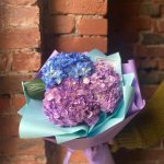 Красивый букет из 3 сиреневых и синих гортензий “Актау”