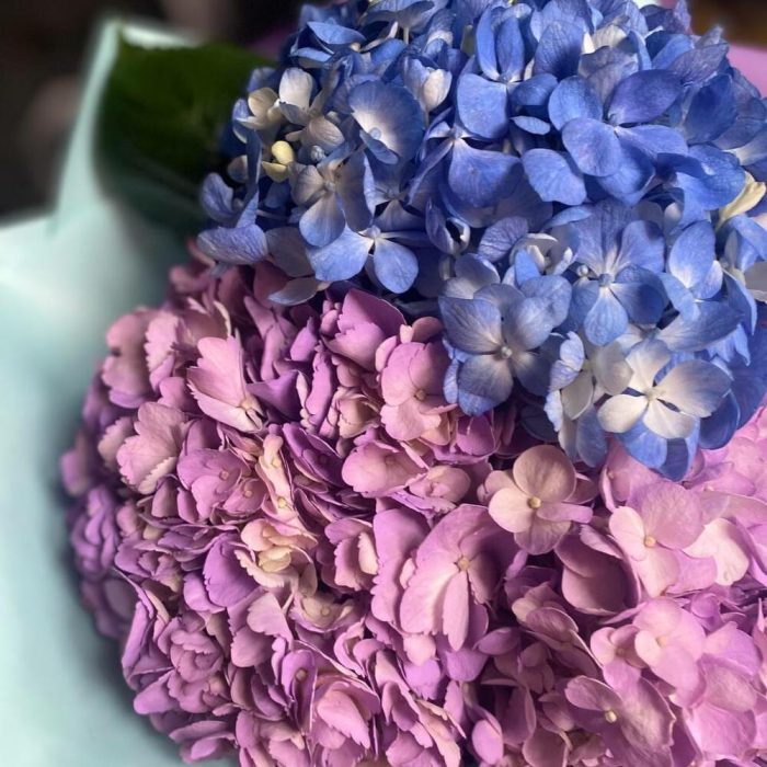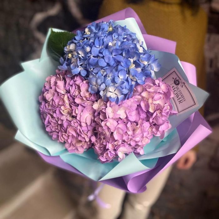 Красивый букет из 3 сиреневых и синих гортензий “Актау”