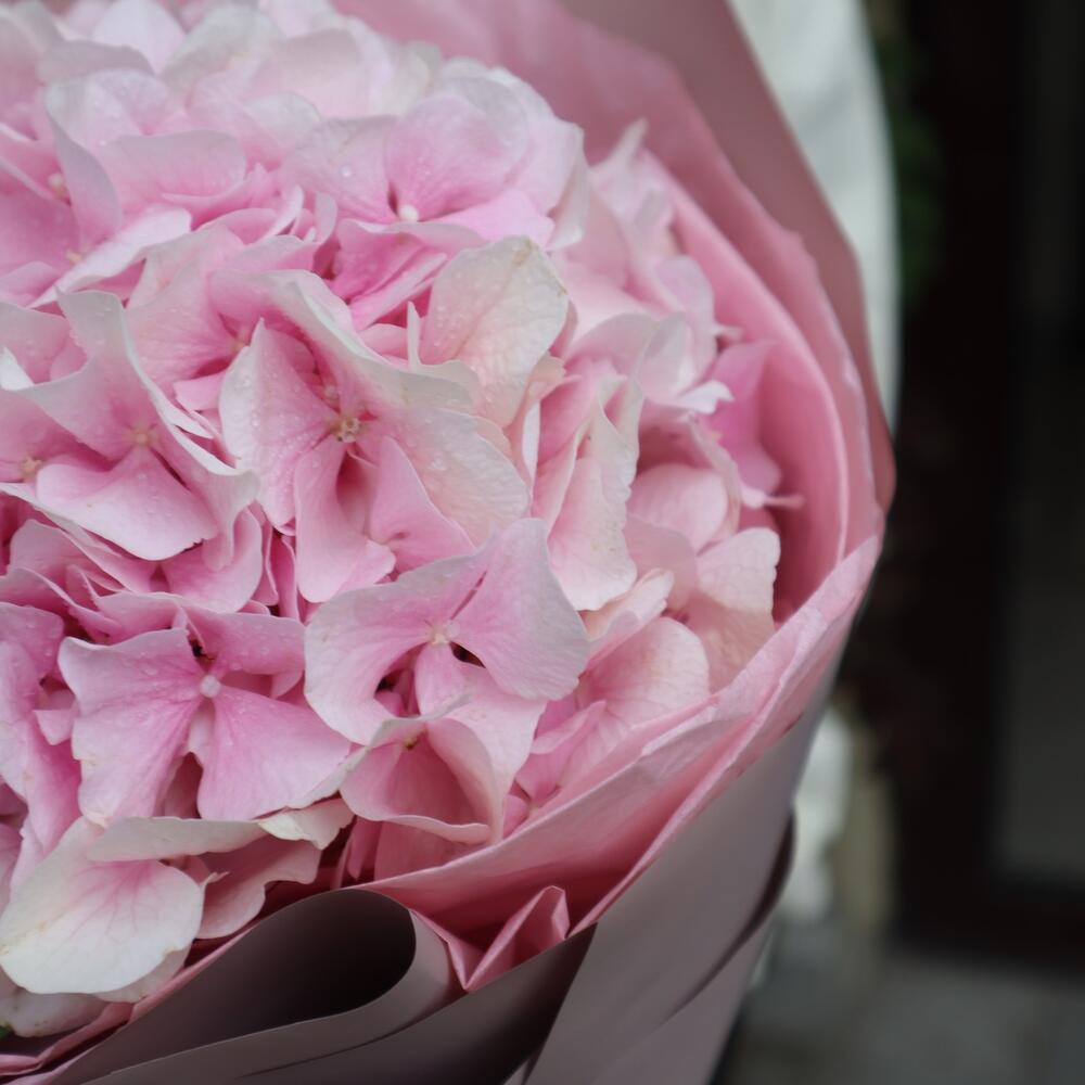 Гортензия розовая – 1 шт.Фетр – 2 шт.Упаковка корейская пленка – 3 шт.Лента репсовая – 1 шт.