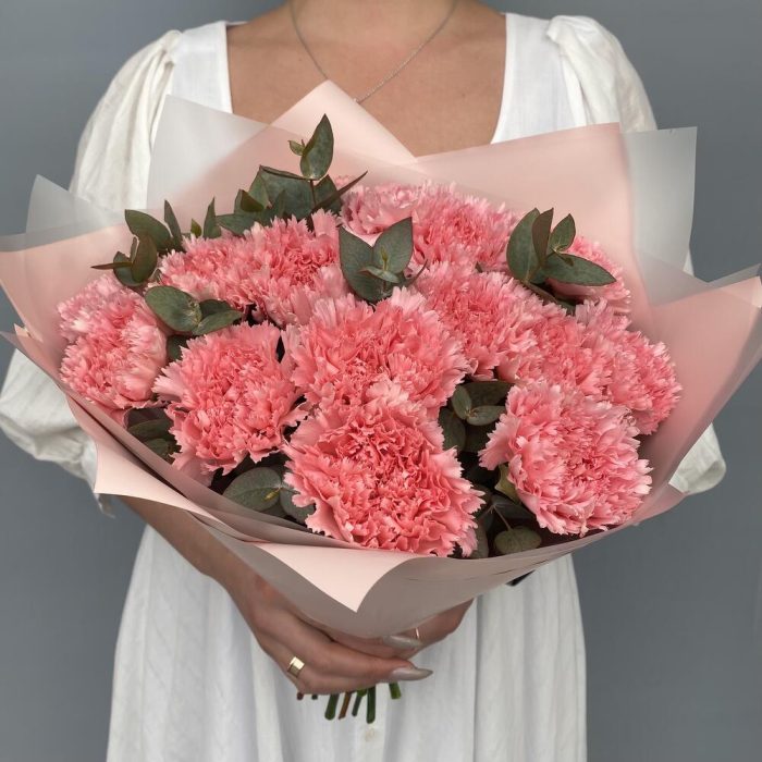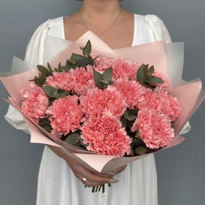 Букет диантусов (гвоздик) с эвкалиптом