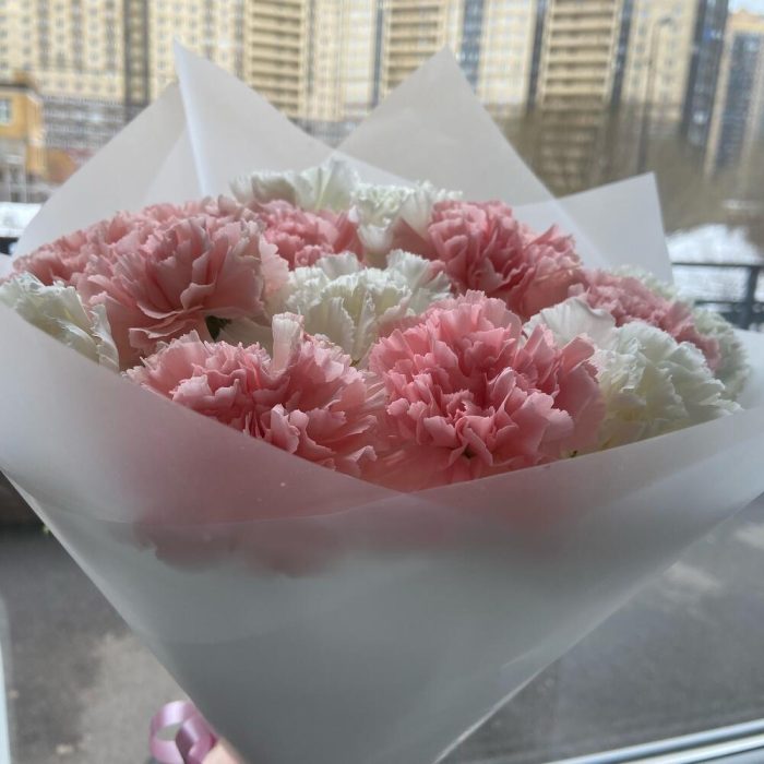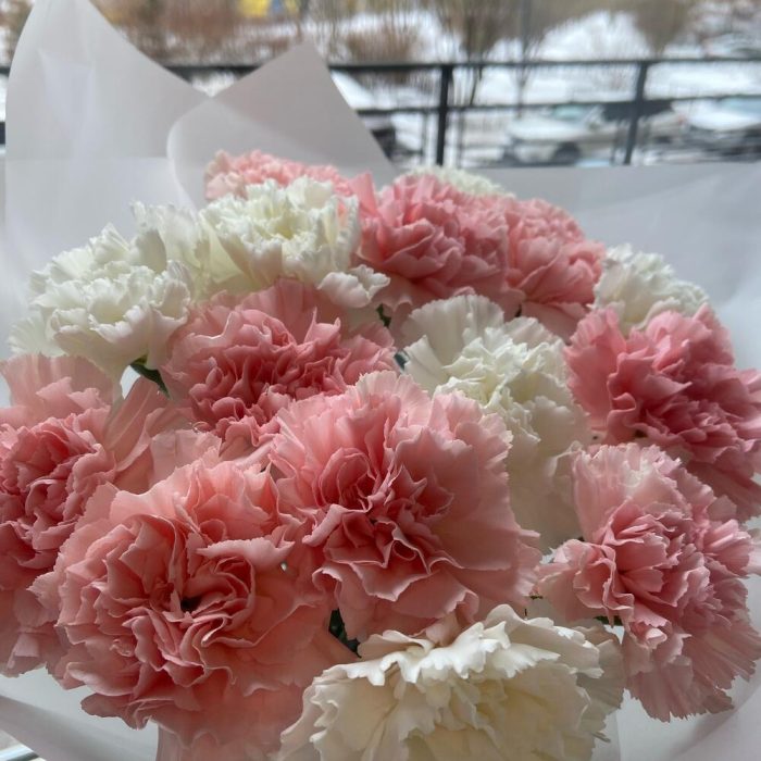 Диантус – 15 шт.упаковка прозрачная матовая – 1 шт.Атласная лента – 1 шт.