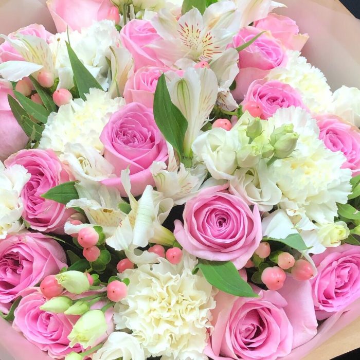 Категории: АльстромерииРозы, Гвоздики, Лизиантусы