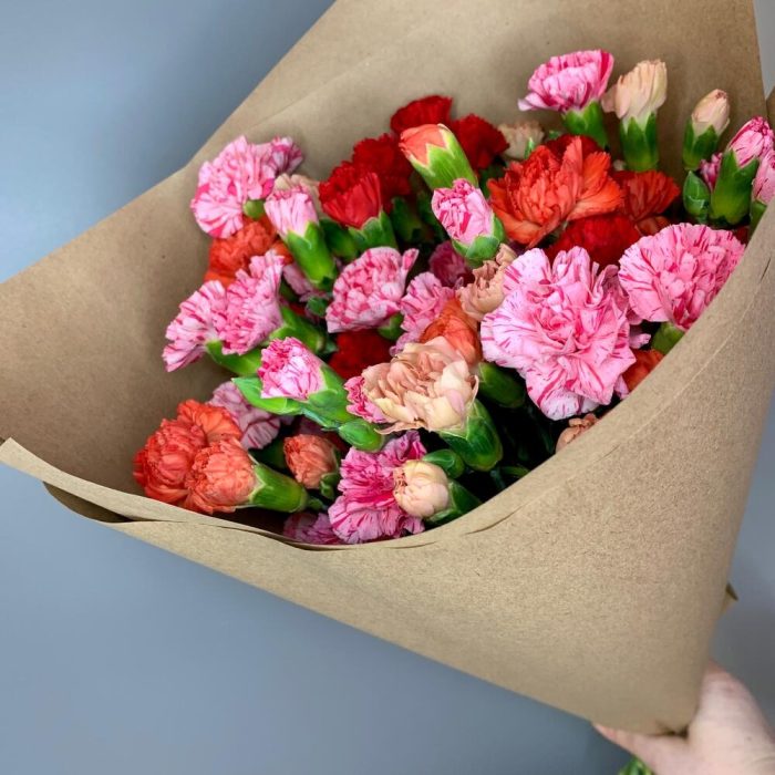 Лента атласная – 2 шт.Крафт – 2 шт.Диантус кустовой – 23 шт.