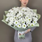 Букет хризантем (ромашковидных) с салалом, 5 шт