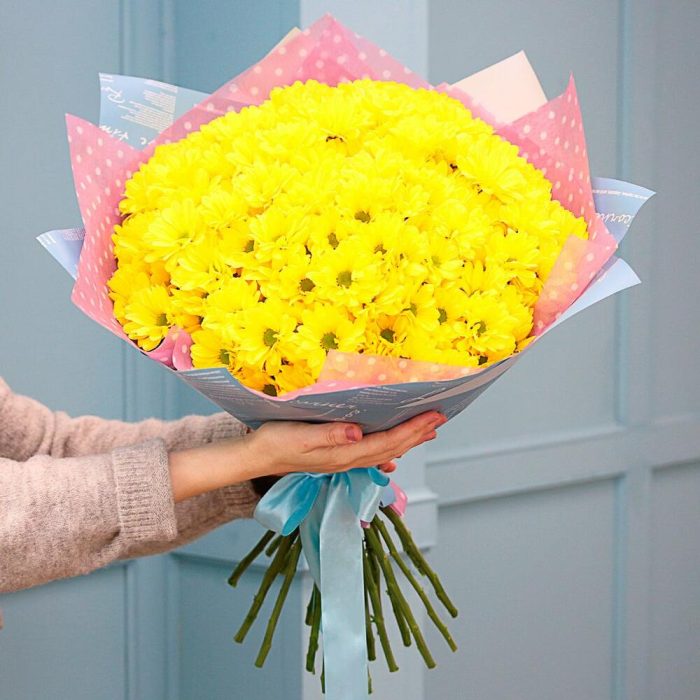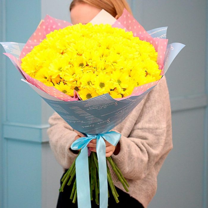 Букет из 25 желтых кустовых хризантем Бакарди