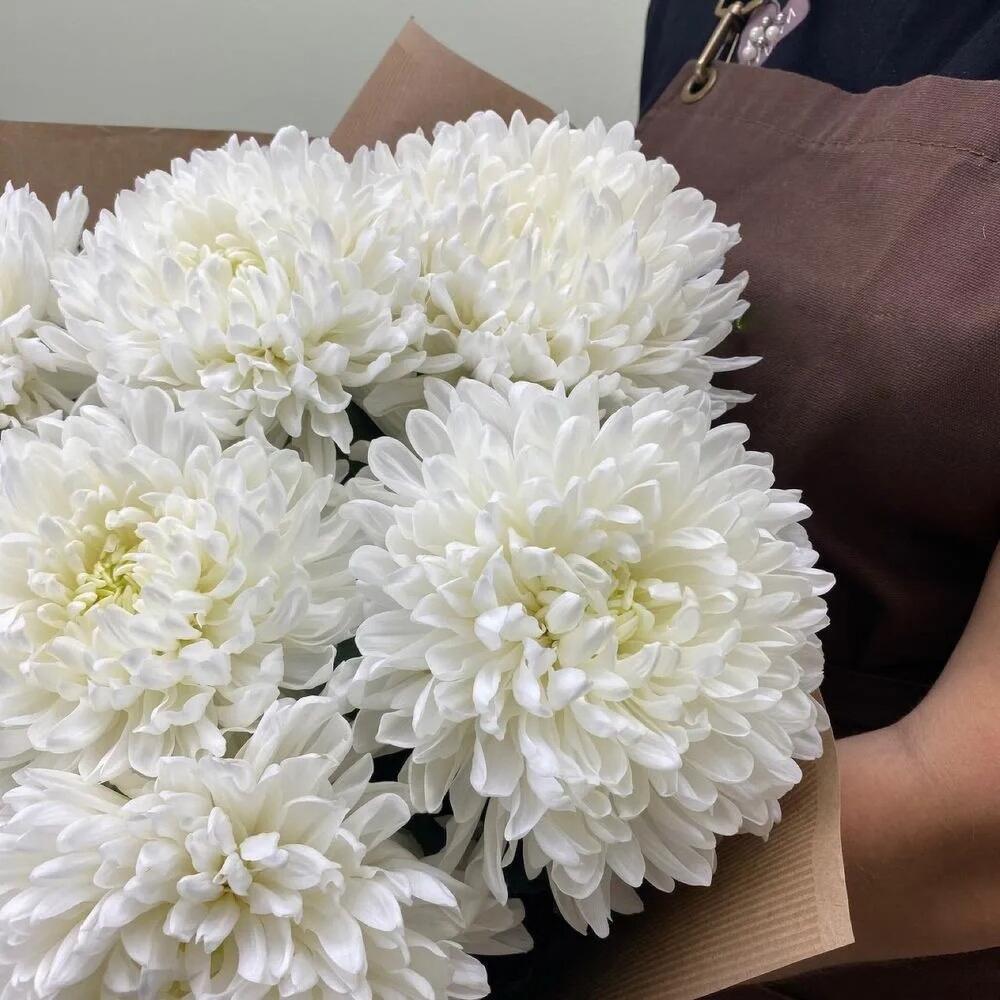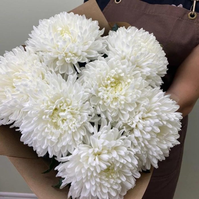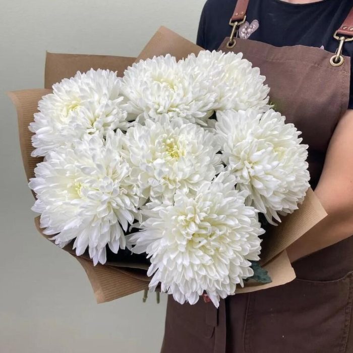 Хризантема – 7 шт.Лента атласная – 1 шт.Крафт упаковка – 1 шт.