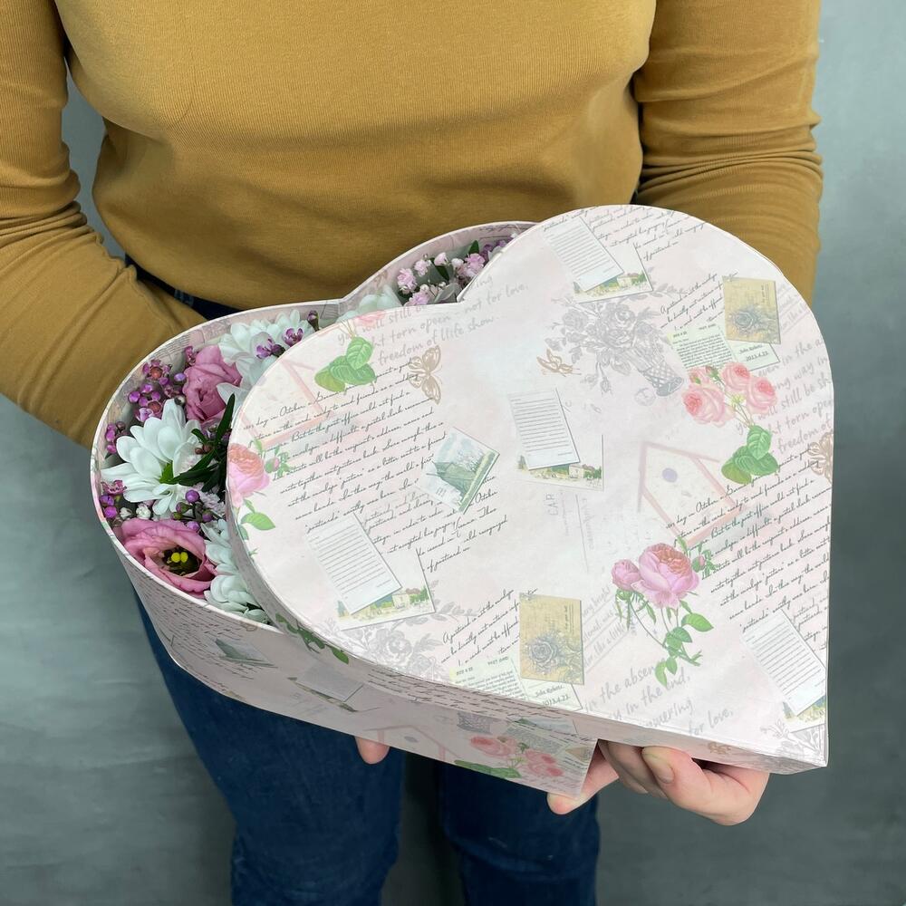 “Сладкое сердце ” – цветочная композиция с сладостями в коробке “Сердце”