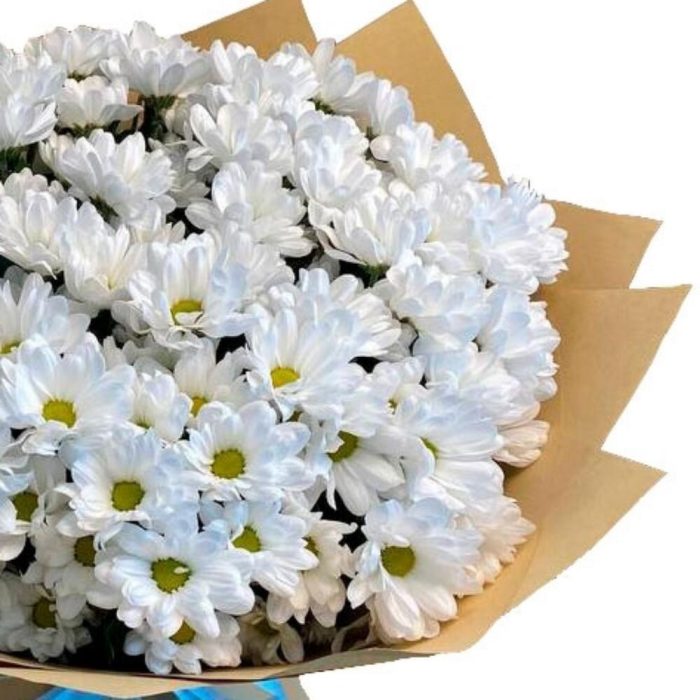 Хризантема кустовая – 25 шт.Упаковка – 4 шт.Лента атласная – 2 шт.