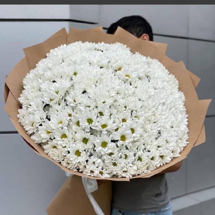 25 хризантем в крафте