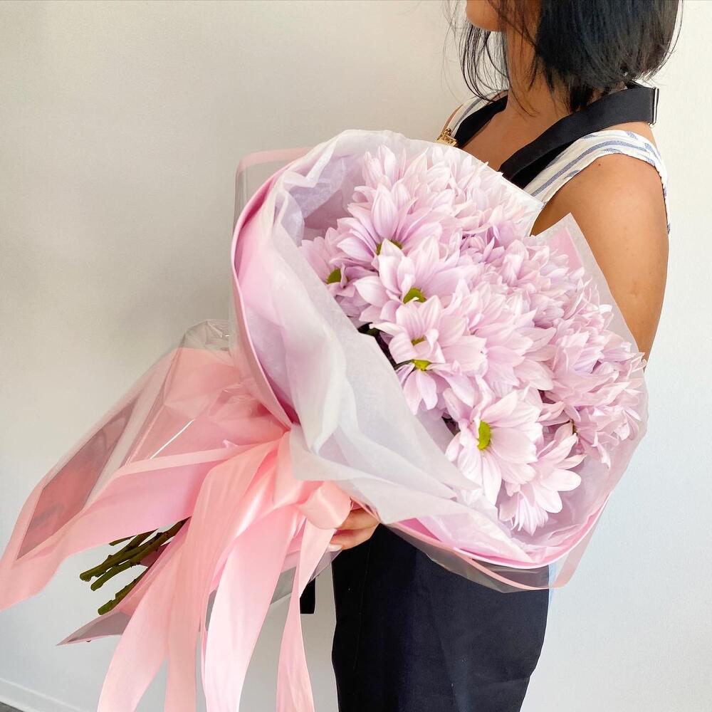 Стоит купить букет хризантем для возлюбленной, такой подарок станет отличным способом выразить симпатию. Универсальный цветок можно дарить на день рождения, 8 Марта, День влюбленных, Новый год и любой другой праздник. Стильно оформленный букет хризантем помогает выразить благодарность, уважение, признательность, поэтому его часто дарят учителям, преподавателям, коллегам, знакомым.Уважаемые покупатели! Пожалуйста обратите ваше внимание на размер букета при заказе! Он учитывается вместе с упаковкой Чтобы наши прекрасные букеты дольше радовали получателя рекомендуем вам: ⭐Обновить срез букета перед тем, как поставить его в воду⭐Ставить цветы в прохладную проточную воду ⭐Меняйте воду в вазу каждый день⭐Не забывайте подрезать цветы, перед тем, как ставить их в воду⭐Не ставить у отопительных приборов и на сквозняке Фирменный стиль наших букетов разработан специально так, чтобы упаковку не нужно было снимать, так как она придаёт целостность букету и прекрасно держится в вазе