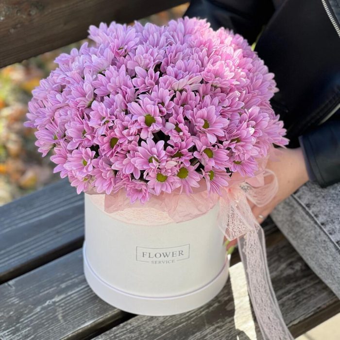 Хризантема – 13 шт. Коробка – 1 шт. Оазис – 2 шт.
