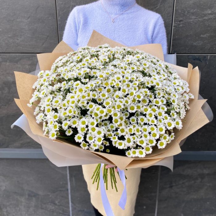Пышный букет с нежными сантини, оформленный в крафт – романтично и очаровательно К букету вы так же можете добавить открытку с вашими пожеланиями, воздушный шар в виде сердца, коробочку Raffaello или мягкую игрушку