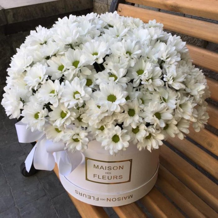 Ромашковые хризантемы являются отличной альтернативой летним ромашкам. Всем любителям ромашек, предлагаем шикарную композицию из белых хризантем в большой фирменной белой Коробке. Данную композицию можно подарить на любой повод!