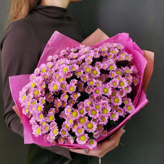 хризантема кустовая мадиба пинк – 11 шт.Упаковка дизайнерская – 5 шт.джут натуральный – 1 шт.