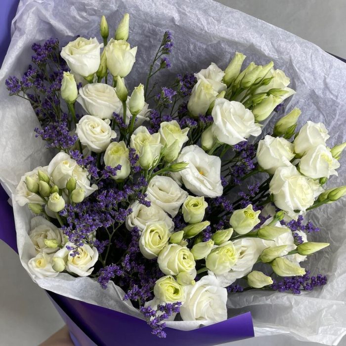 Лизиантус – 7 шт.Лимониум – 3 шт.Упаковка дизайнерская – 1 шт.