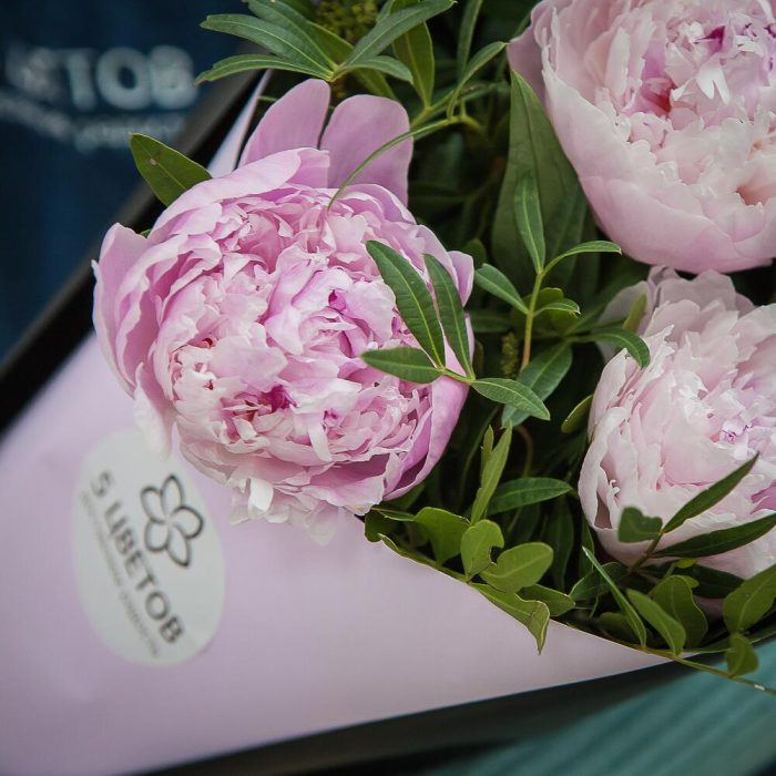 Букет из 3 розовых пионов с фисташкой