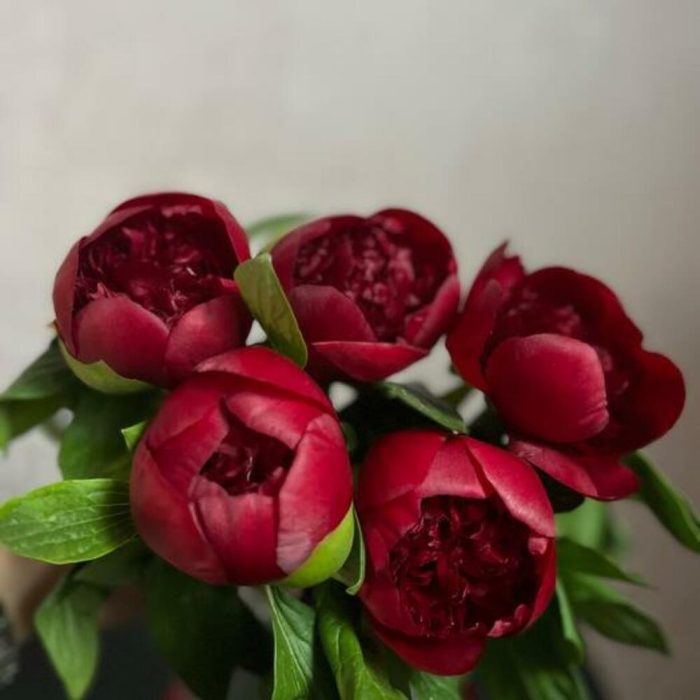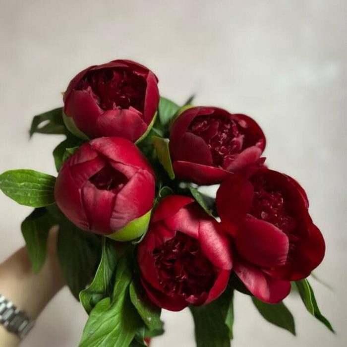 Атласная лента – 1 шт.пионы red charm – 5 шт.