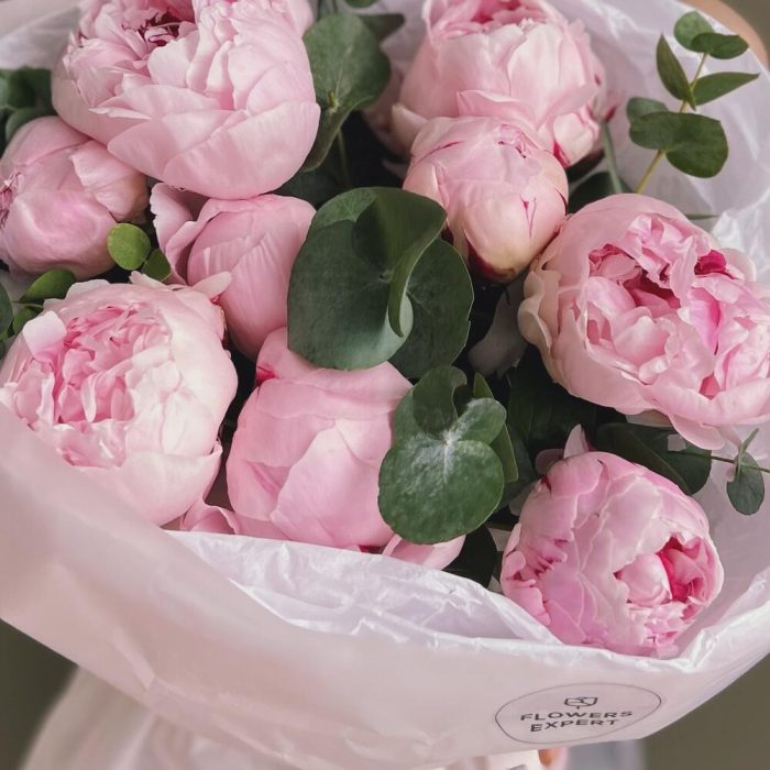 Букет из 9 пионов с эвкалиптом “PINK PLOMBIR”