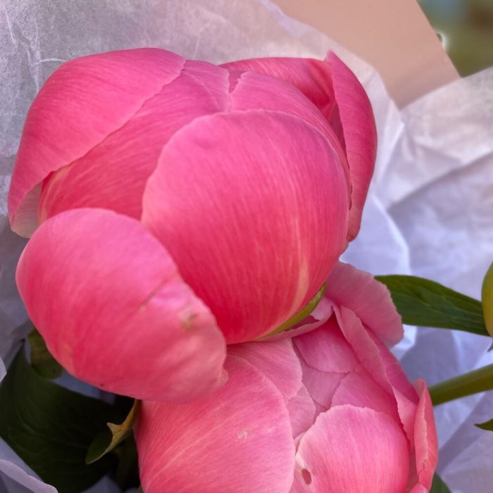 Пион Коралл Шарм (Coral Charm) – 3 шт.Лента атласная – 1 шт.Упаковка дизайнерская – 2 шт.