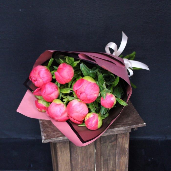 mono bouquet 24 из 9 пионов сорта Coral Charm