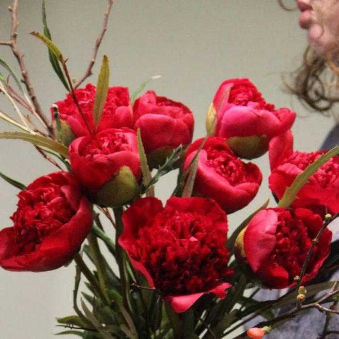 Пионы, гревиллия и ветви