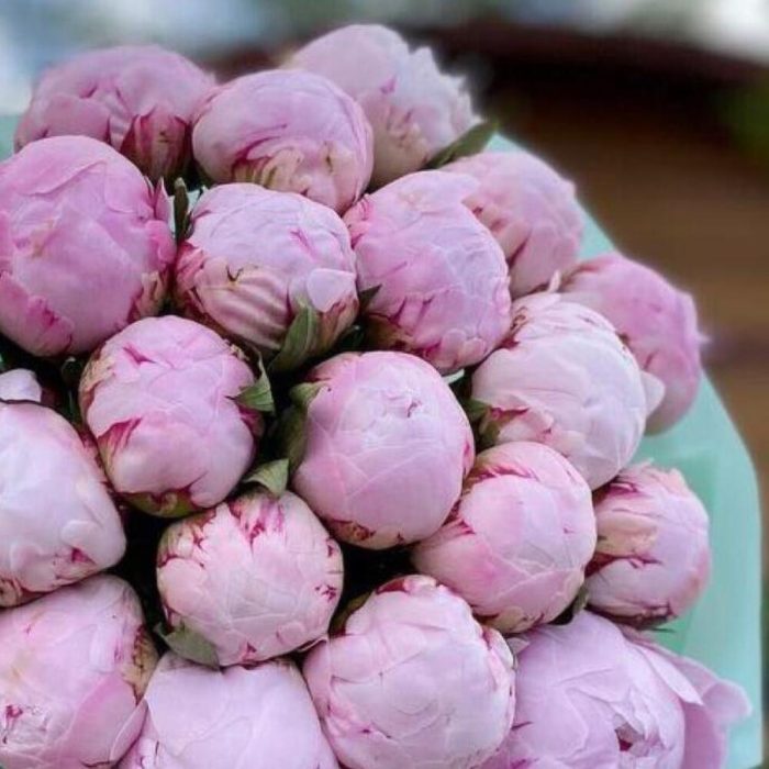 Пион розовый – 25 шт.Упаковка дизайнерская – 1 шт.Лента атласная – 2 шт.Открыточка с вашими пожеланиями – 1 шт.хорошее настроение – 100 шт.инструкция по уходу за цветами – 1 шт.коробка переноска – 1 шт.Кризал – 1 шт.