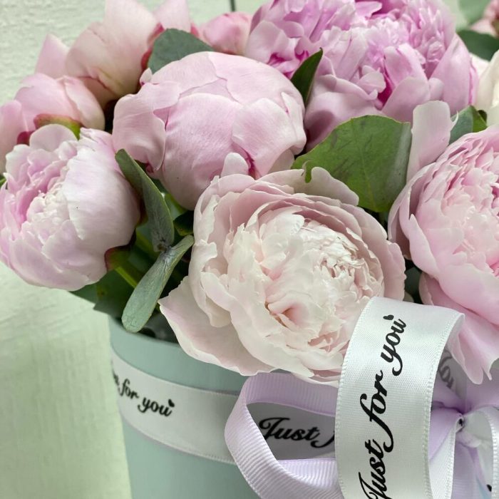 Лента – 2 шт.Зелень – 5 шт.Оазис – 1 шт.Коробка – 1 шт.пионы – 13 шт.