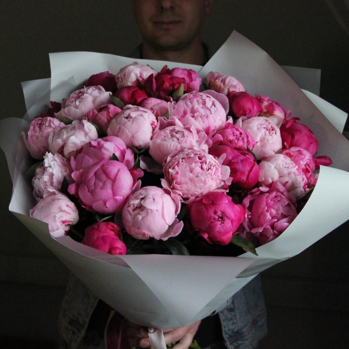Упаковка – 3 шт.Лента атласная – 2 шт.Пион Голландия – 35 шт.