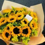 Букет из 15 подсолнухов и мимозы