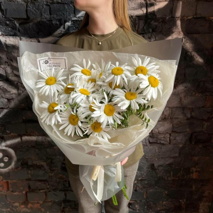 Букет из 15 садовых ромашек в стильной упаковке “Авирам”