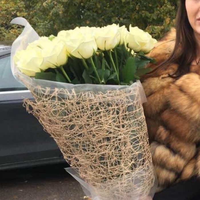 31 роза 70 см белые Ароматные