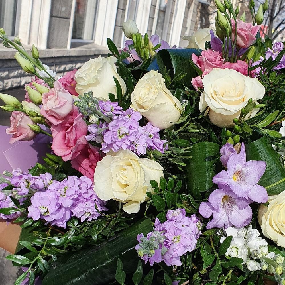 Ароматный букет с матиоллой,фрезией и лизиантусом