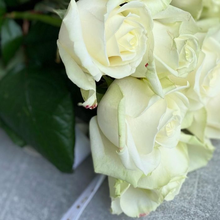 Букет белых роз и лизиантуса с Эвкалиптом «Мята»