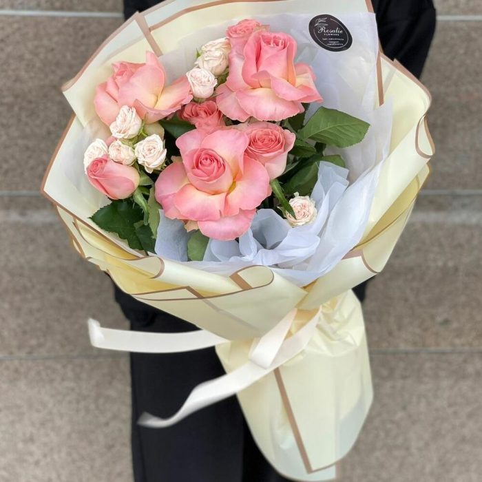Альстромерии, Кустовые розы, Лизиантусы, Пионовидные розы, Розы, Ромашки