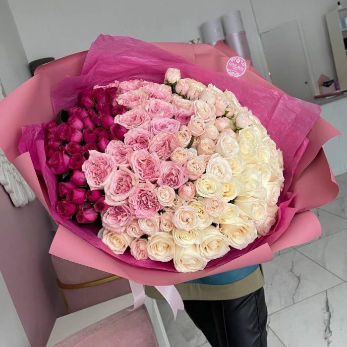 Букет градиент с пионовидными и кустовыми розами