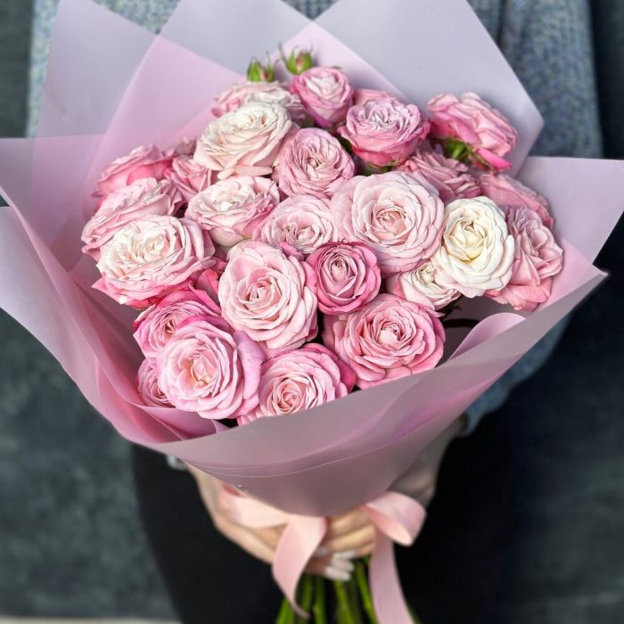 Лента атласная – 1 шт.Стильная упаковка – 1 шт.роза кустовая пионовидная леди бомбастик – 11 шт.