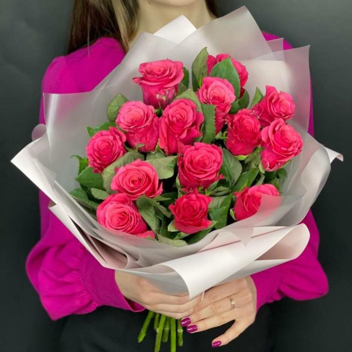 Роза – 15 шт.Пленка матовая – 3 шт.