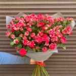 Букет из 15 ярких кустовых роз (моно 052)