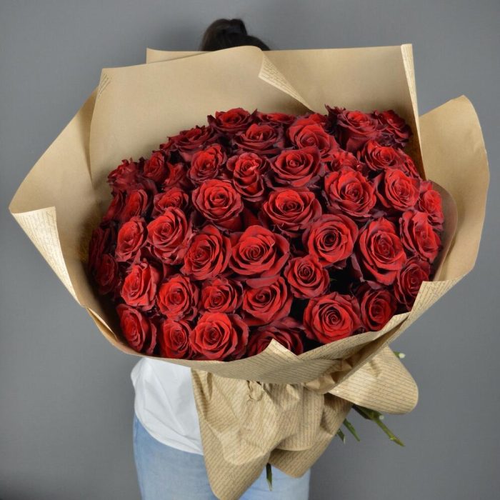 Букет из 51 красных роз premium 60-70 см (Эквадор) в стильной упаковке