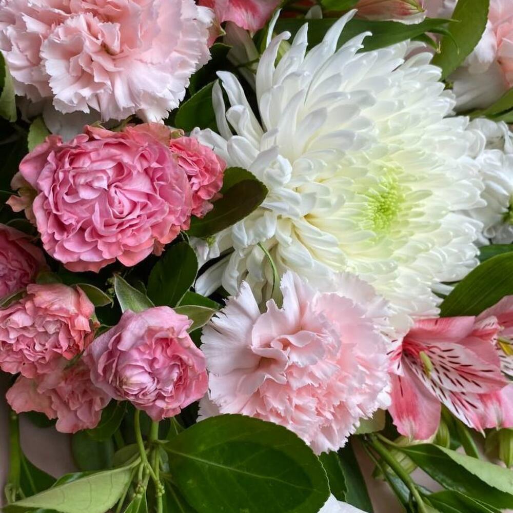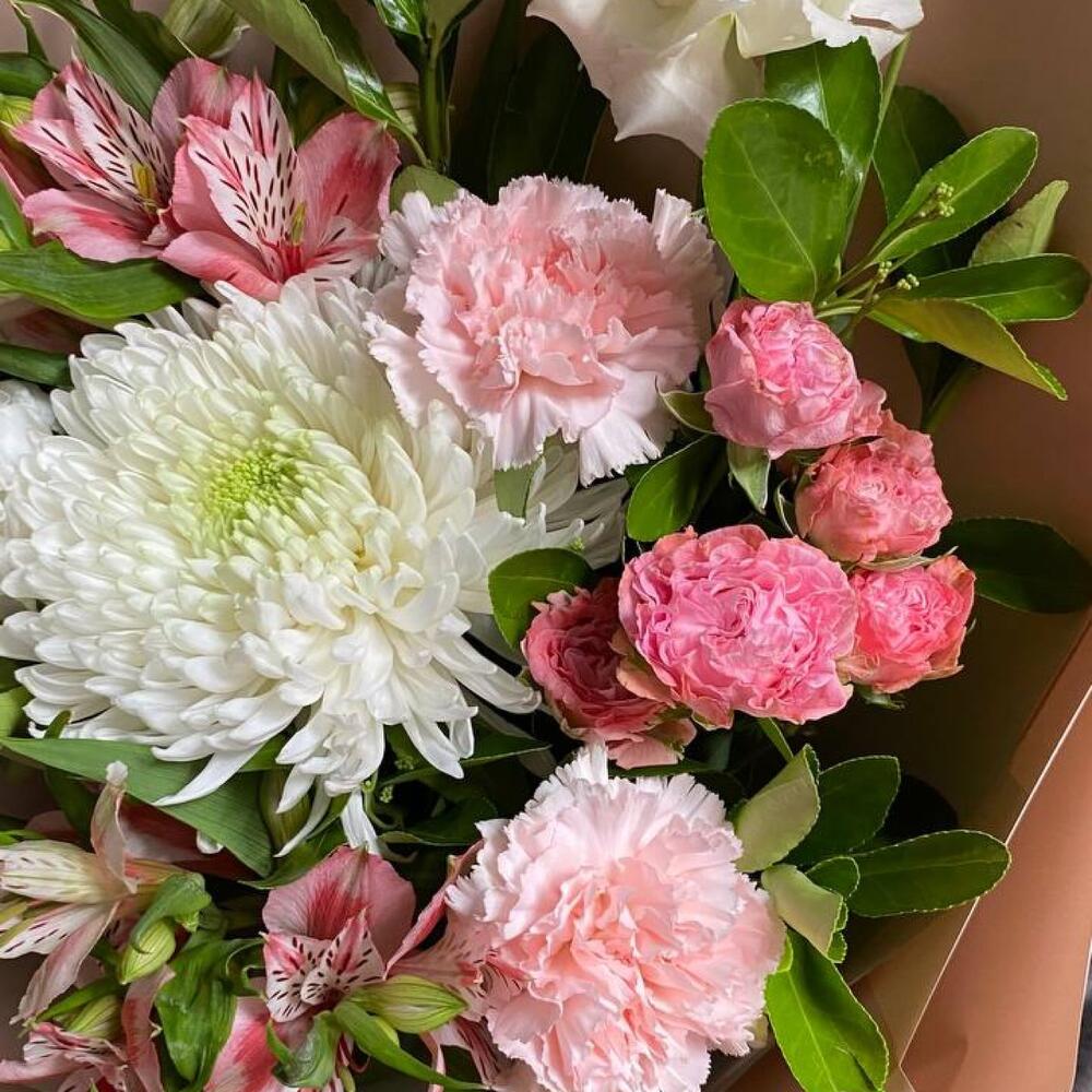 Категорий: Альстромерии, Гвоздики, Кустовые розы, Лизиантусы, Розы, Хризантемы
