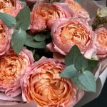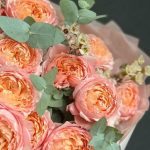 Букет из моно пионовидной кустовой розы Джульетта и эвкалипт